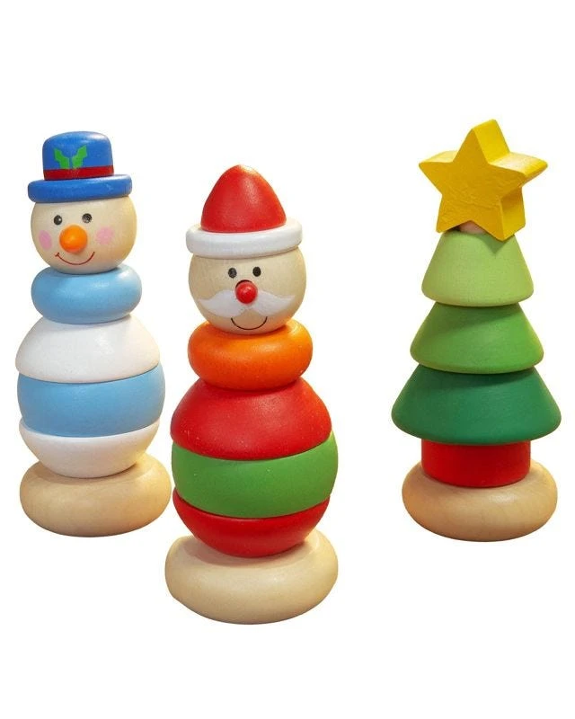 - Festive wooden tower stacking game