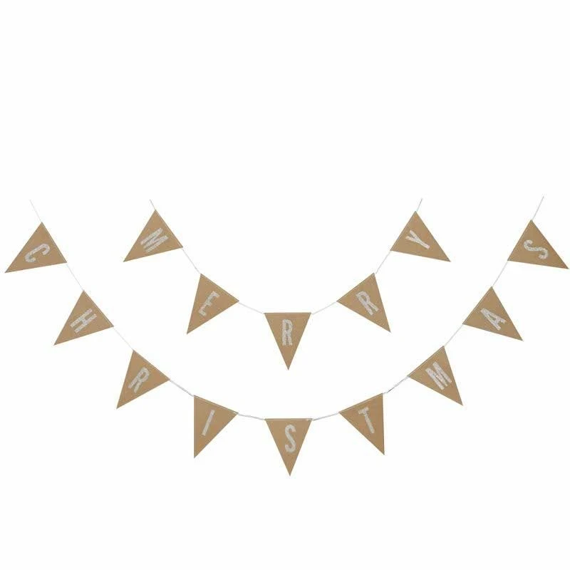 Each silver glitter letter spells out ‘Merry Christmas’ has it’s own brown kraft flag and measures 2.5 metres in length.