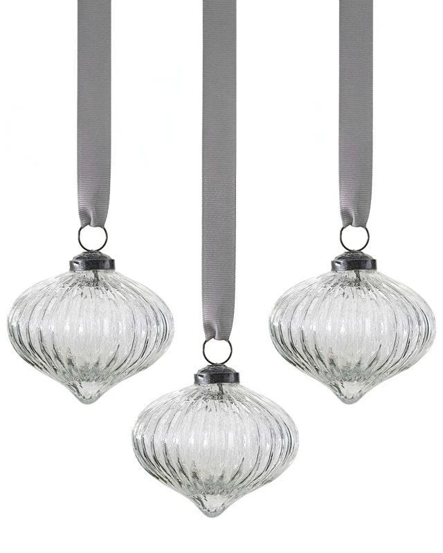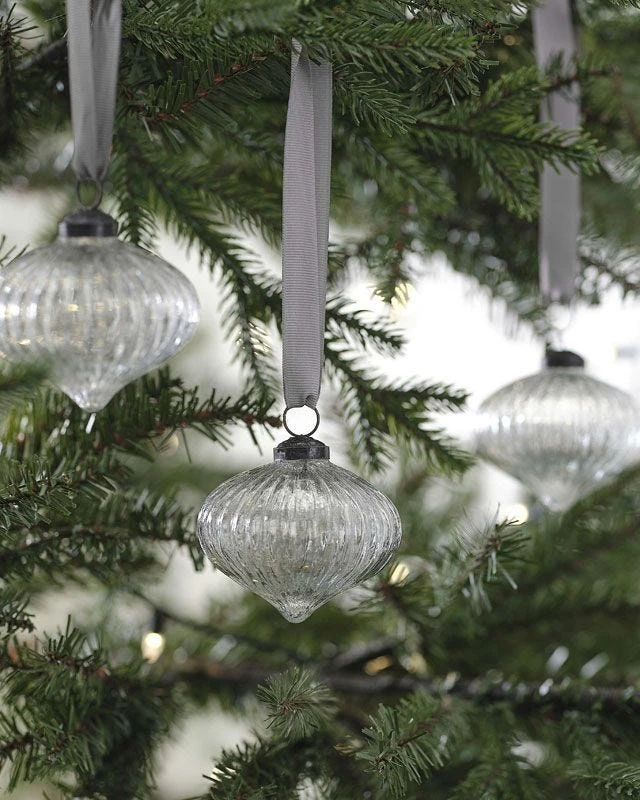- Bring an opulent feel to your tree this year with these glass ribbed tree decorations